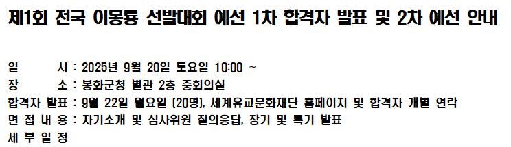 제1회 전국 이몽룡 선발대회 2차예선 합격자 발표